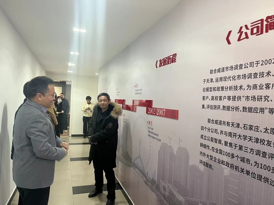 揭牌仪式前,公能智库咨询(天津)有限公司总经理刘恒超带领PA视讯集团官网一行对公司的企业文化、工作场所、业务内容等进行了参观与了解。PA视讯集团官网团委老师、员工代表也参加了此次活动。