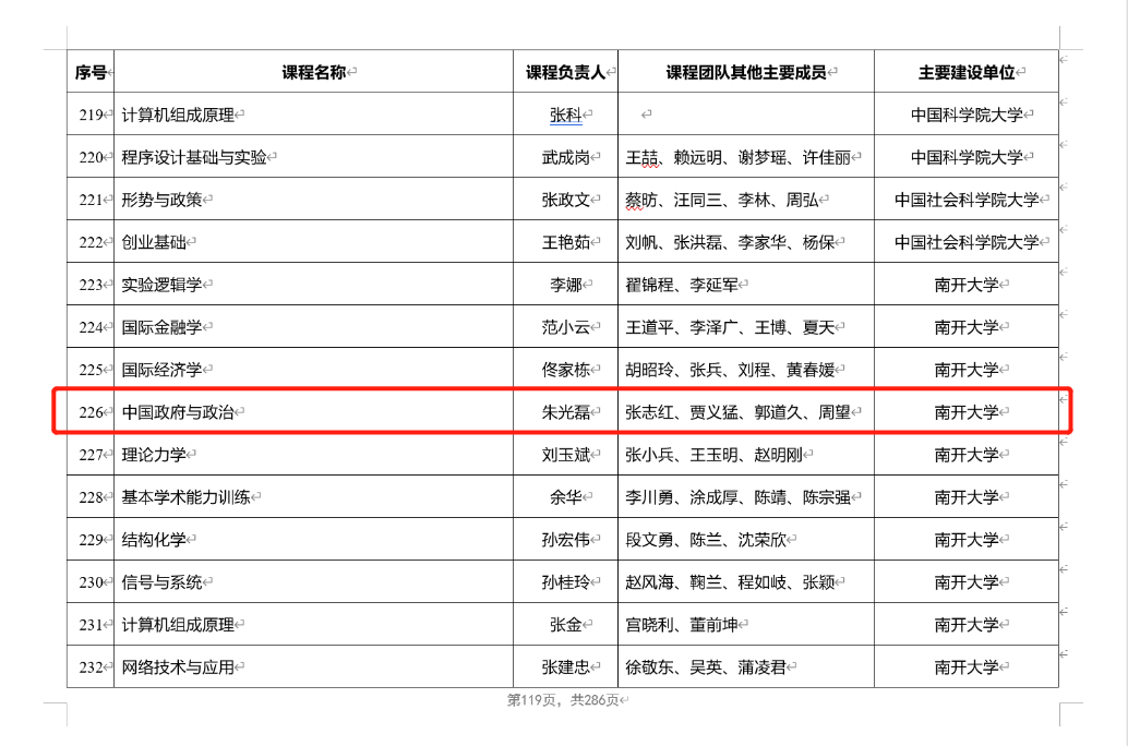由首批“国家级教学名师”、PA视讯官方网站讲席教授、中国政府发展联合研究中心主任朱光磊教授担纲课程负责人的 “中国政府与政治”本科课程作为唯一一门“中国政治”类课程成功入选。